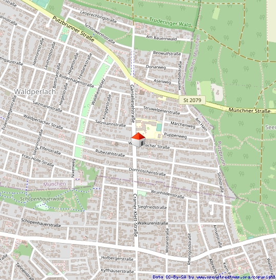Das Grundstück befindet sich in der Gänselieselstraße im Märchenviertel im Stadtteil Waldperlach.