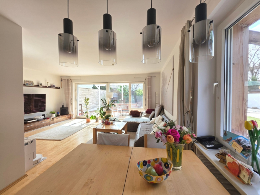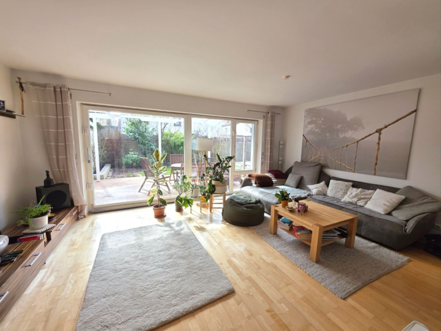 Ruhige Doppelhaushälfte mit überdachter Terrasse und eigenem Pool….