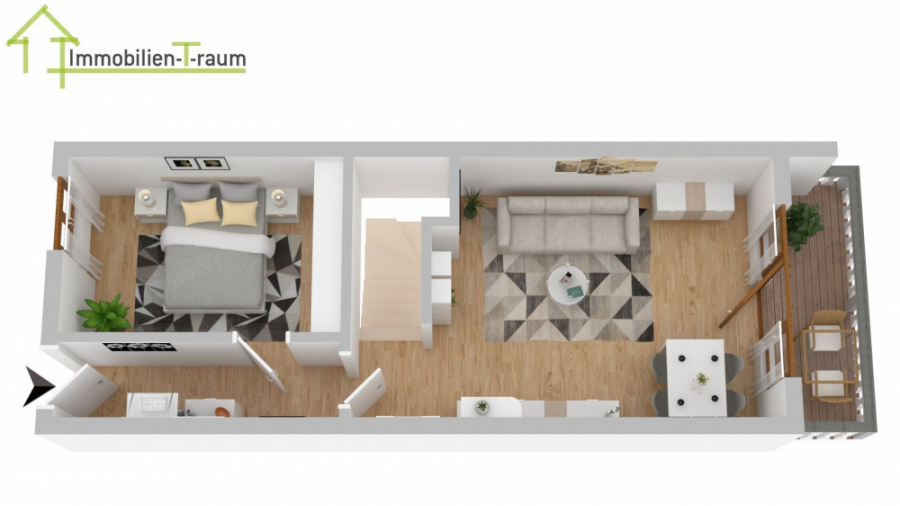 - einen neuen modernen Bodenbelag in Parkettoptik im Wohnzimmer