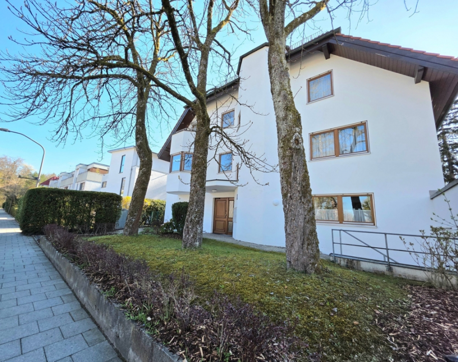 Die Wohnung liegt in einer kleinen, gepflegten Wohnanlage im 1. Stock mit Blick ins Grüne und unmittelbarer Nähe zum Perlacher Forst.